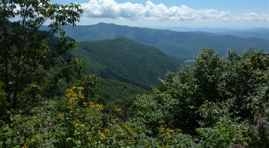 This extensive ridge line begins with Pinnacle and follows with Graybeard and the Seven Sisters ( Big Slatey, Little Sister, Fifth Sister, Fourth Sister, Big Piney, Little Piney and Tomahawk.